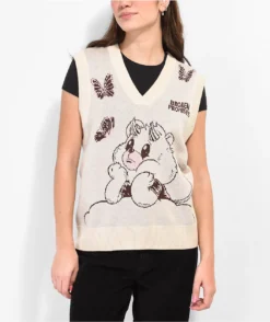 The Cry Later knit sweater vest from Broken Promises comes in a cream colorway and features a cute bear knitted at the front with pink butterflies around. The sleeveless design makes it easy to create any sweater vest outfit with favorites from your collection.