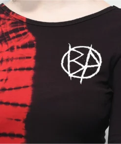Splash a bold look into your dress collection with the Riot red split tie dye long sleeve dress from Broken Promises! This dress features a slim fit silhouette construction with an open back and a fixed strap, a vertically split red tie dye treatment throughout, and a Broken Promises logo screen-printed at the left chest, all lending your wardrobe a bold and unique design with subtle, yet striking branding.