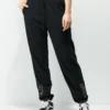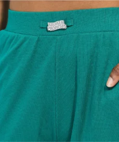 The Salvage Broken Promises pants feature a ribbed, loose fit with a teal colorway as well as a metal charm adorning the front of the elastic waistband.