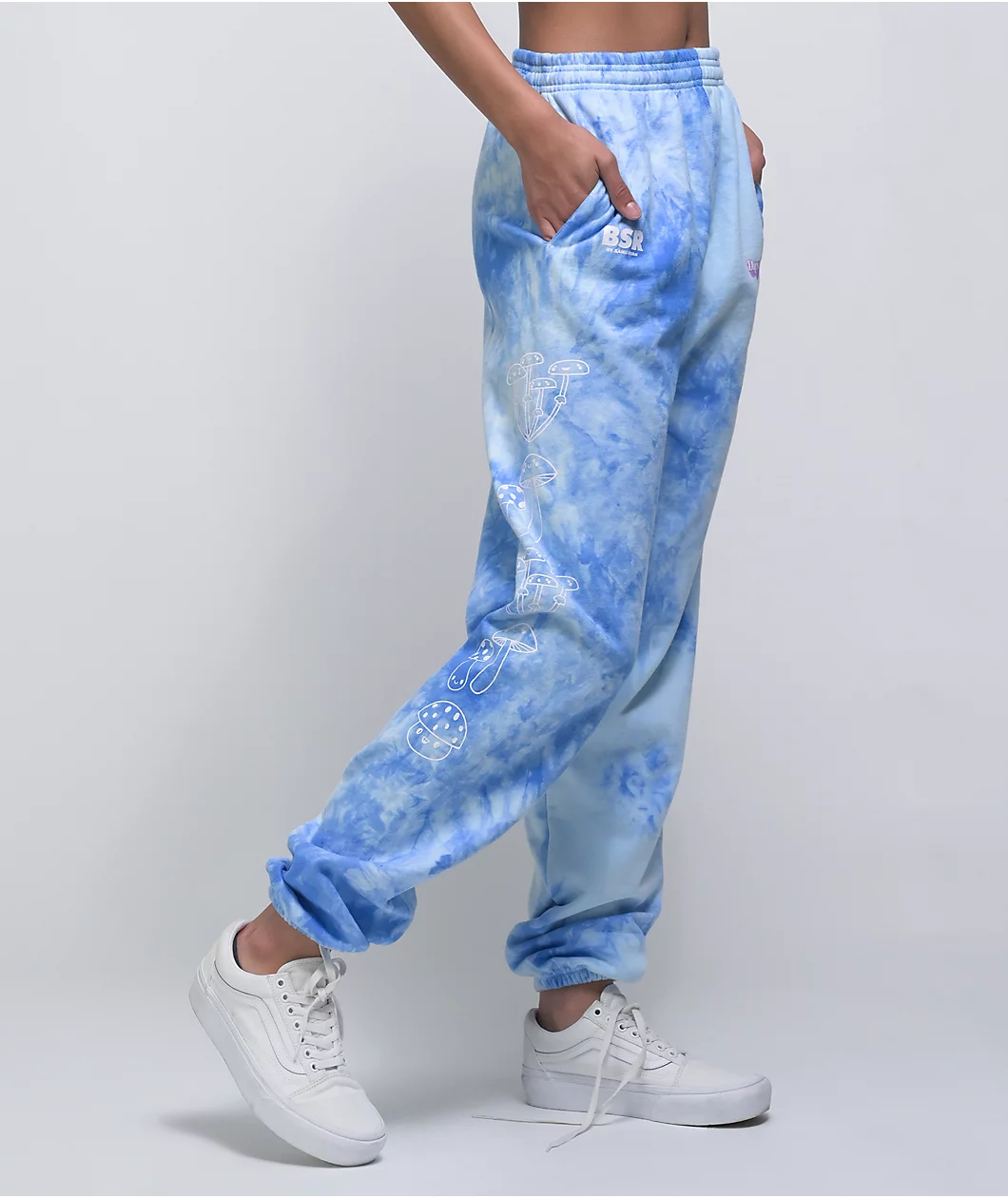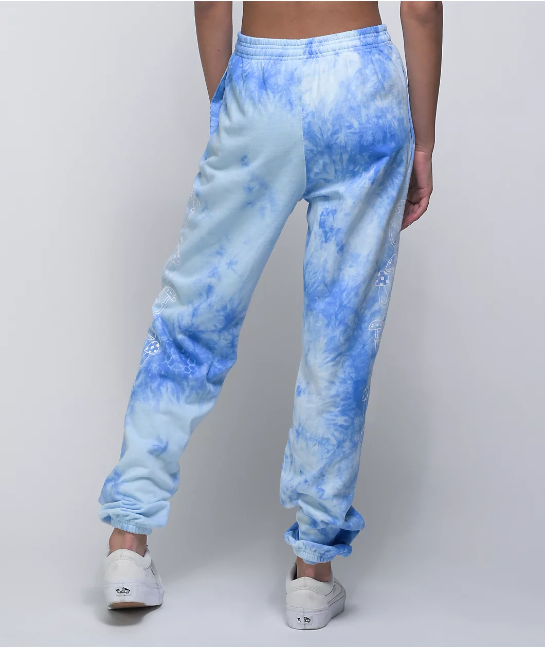 Add some blue-sky style to your laid-back attire with the Day Dreamer blue tie dye sweatpants from By Samii Ryan! The fleece-lined legs and elastic waistband and cuffs keep the sweats comfortable, while the brilliant blue tie-dyed colorway adds a vibrant splash of color to the mix. Screen-printed mushroom graphics descend down each leg, with script reading “Daydreamer” hiding out on the left hip, lending these pants plenty of psychedelic style.