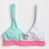 The Denim Scrunchie bandeau bikini top from Damsel comes in a grey colorway, and features large ribbed, scrunchie-style straps at the sides, and smaller ribbed fabric at the front.