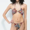 The Denim Scrunchie high leg bikini bottom from Damsel is constructed from a soft blend of spandex and polyester that comes in a grey colorway. The front features slightly ribbed fabric, while the straps at the sides feature larger ribs and a scrunchie design.