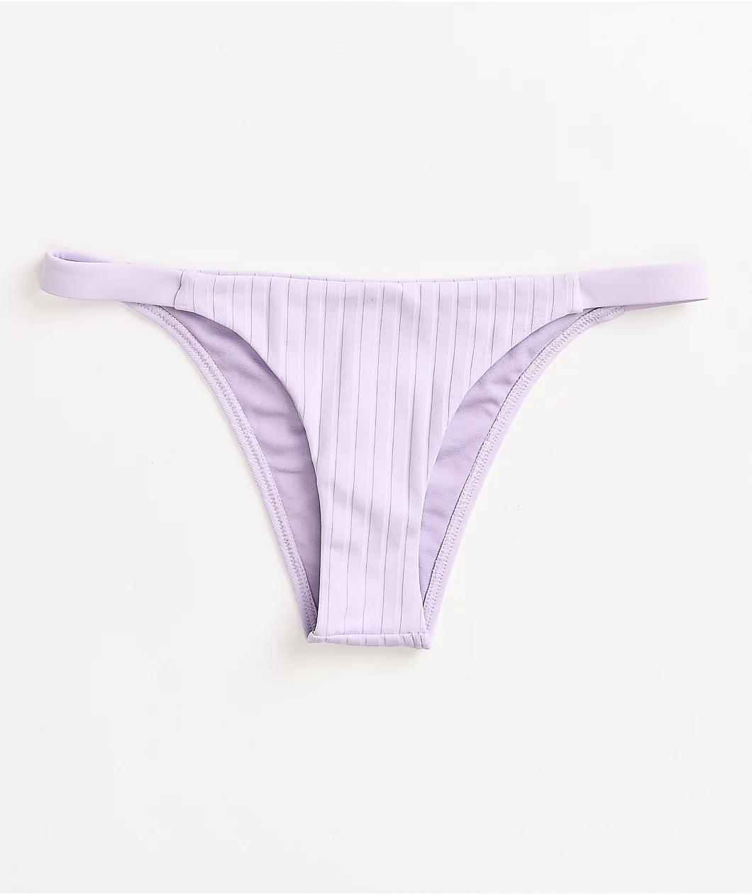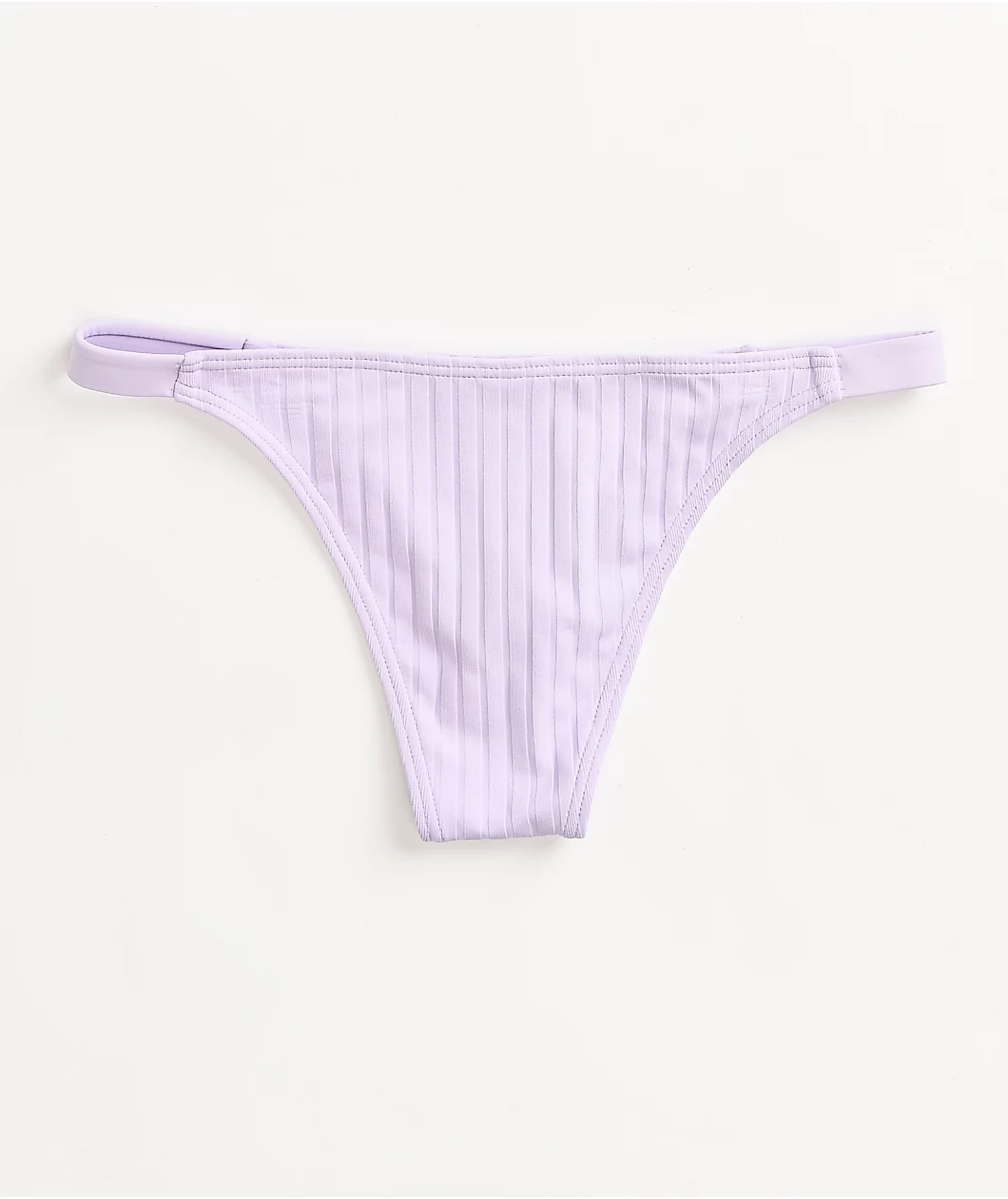 Whether you’re floating, swimming, or just hanging in the sun getting your tan on, check out the Photon super ribbed lavender sport bikini bottom from Damsel! This bottom comes in a ribbed lavender construction for a simple pop of color and texture, while the cheeky construction still provides a moderate amount of construction so you can look sporty and cute as you head for the beach.