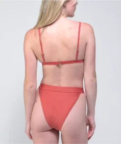 Offer a fashion-forward silhouette into all your swimwear pairings with the Damsel Sedona Herringbone high waist bikini bottom. This bottom comes in a brick red colorway throughout for a subtle accent, paired with three-button detailing on the front of the waistband for fresh detailing.