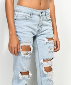The boyfriend fit Easton jeans from Empyre feature a light blue vintage wash with custom rips and distressing throughout for a lived-in look. The comfortable stretch denim material made from lightweight cotton, finished with an on-trend wash and design.