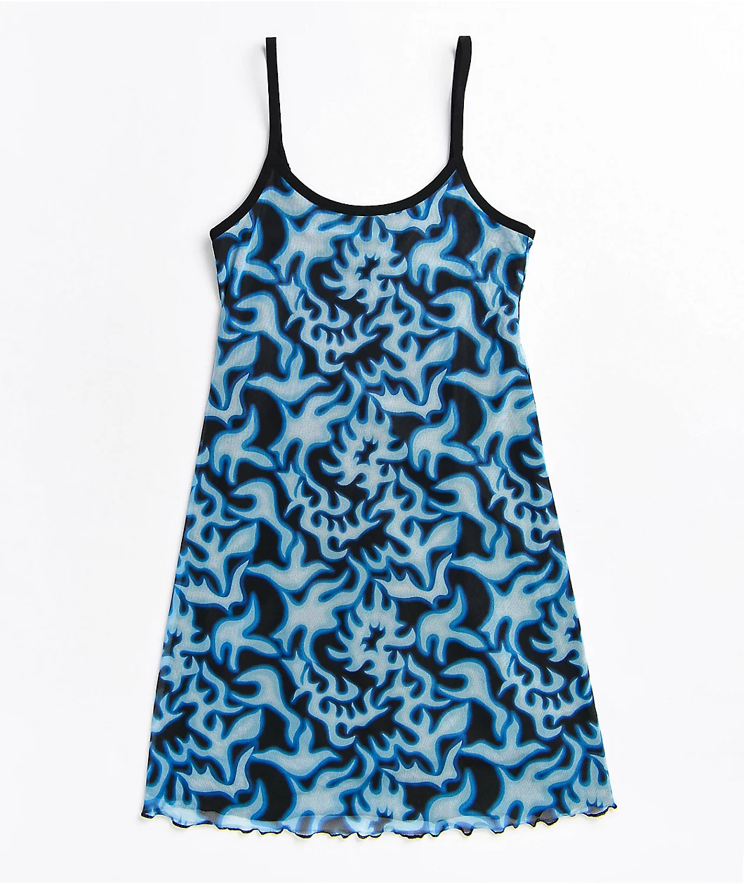 Freshen up your sunny day style with the Empyre flame & dawn blue mesh tank top dress. This fun dress features a mesh construction for breathability and a fresh look, while the blue flame pattern throughout offers a boost of flaming hot vibes too.