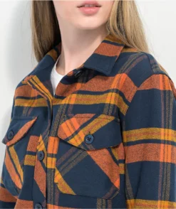 In a navy blue and rust orange colorway comes the Jayden flannel shirt from Empyre, giving a classic fall style with plaid patterning throughout. This flannel is easy to pair and layer thanks to a full button closure, keeping you comfy-cozy even on the colder winter days with a heavyweight construction.