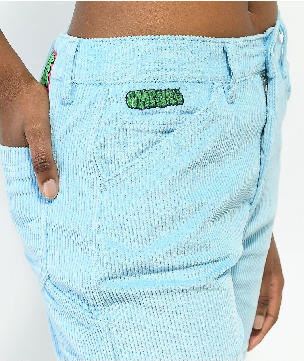 The Laurel carpenter shorts from Empyre feature a corduroy construction made of 100% cotton with a blue colorway, adorned above the right slash pocket with an embroidered brand name and on the back of the waistband with an embroidered brand patch. These shorts feature classic button-and-zip closure, a 5-pocket construction, and a stretchy, elastic waistband for a comfortable fit.