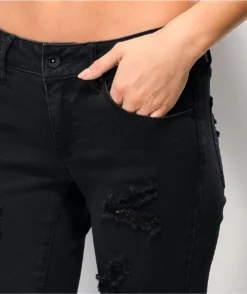 The Tessa Shredded skinny jeans from Empyre offer a classic skinny jean silhouette with ample stretch for comfort and shape maintenance. The black denim material features custom rips and distressing throughout to achieve a grungy look. This style is completed with a standard 5-pocket design and custom Empyre hardware for the utmost convenience.