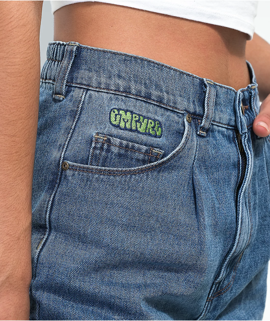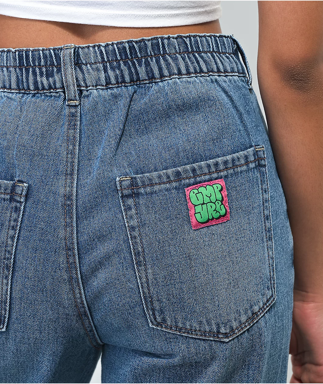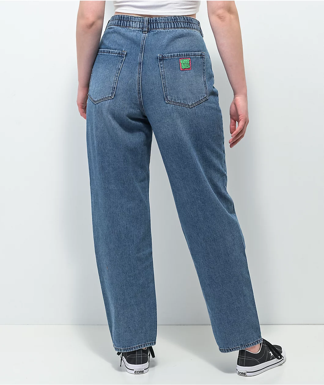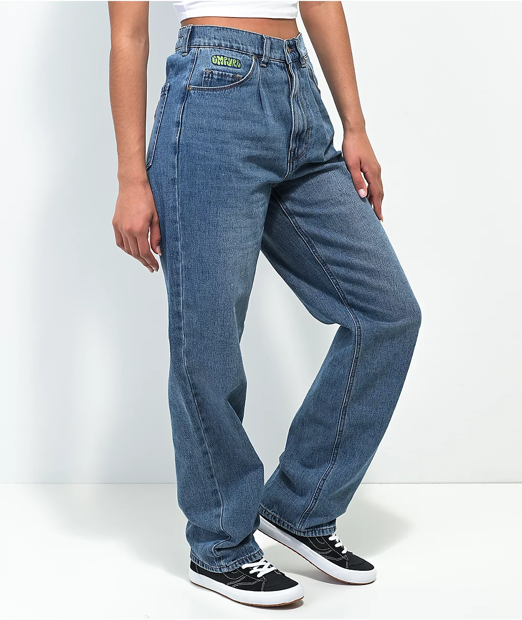 The Tori 90s medium wash denim skate jeans by Empyre come in a comfortable, loose fit, perfect for a skate session or everyday wear. These loose jeans, made from a durable, medium wash denim, are reminescent of 90s trends with a wider leg width and a high waisted sillhouette.