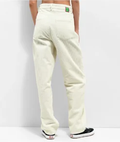 Inspired by the baggy pants popularity of the late 1990s and early 2000s, Empyre brings the Tori off-white corduroy skate pants. These pants have a loose-fit silhouette, with a little extra room in the thigh, thick-ribbed corduroy, and an off-white colorway outfitted with Empyre detailing on the right hip and above right seat pocket.