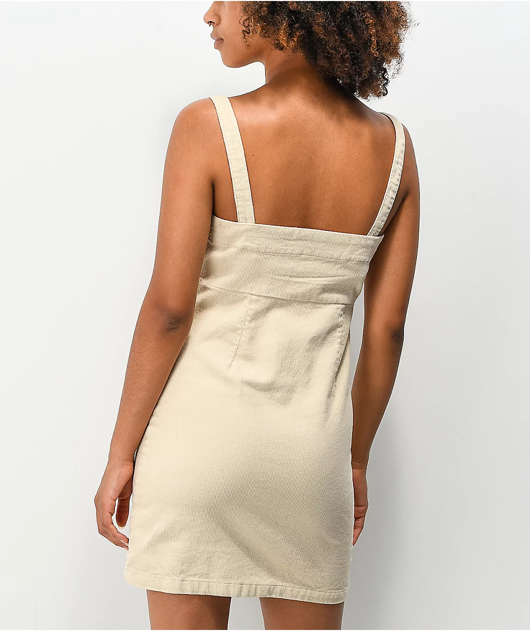 Add a fun look to your everyday ‘fits with the Khaki & Blue cream corduroy dress! This off-white dress features a soft corduroy construction throughout for a nice, textured look. Adjustable straps combine with the A-line silhouette to finish off the look in classic, refined style.