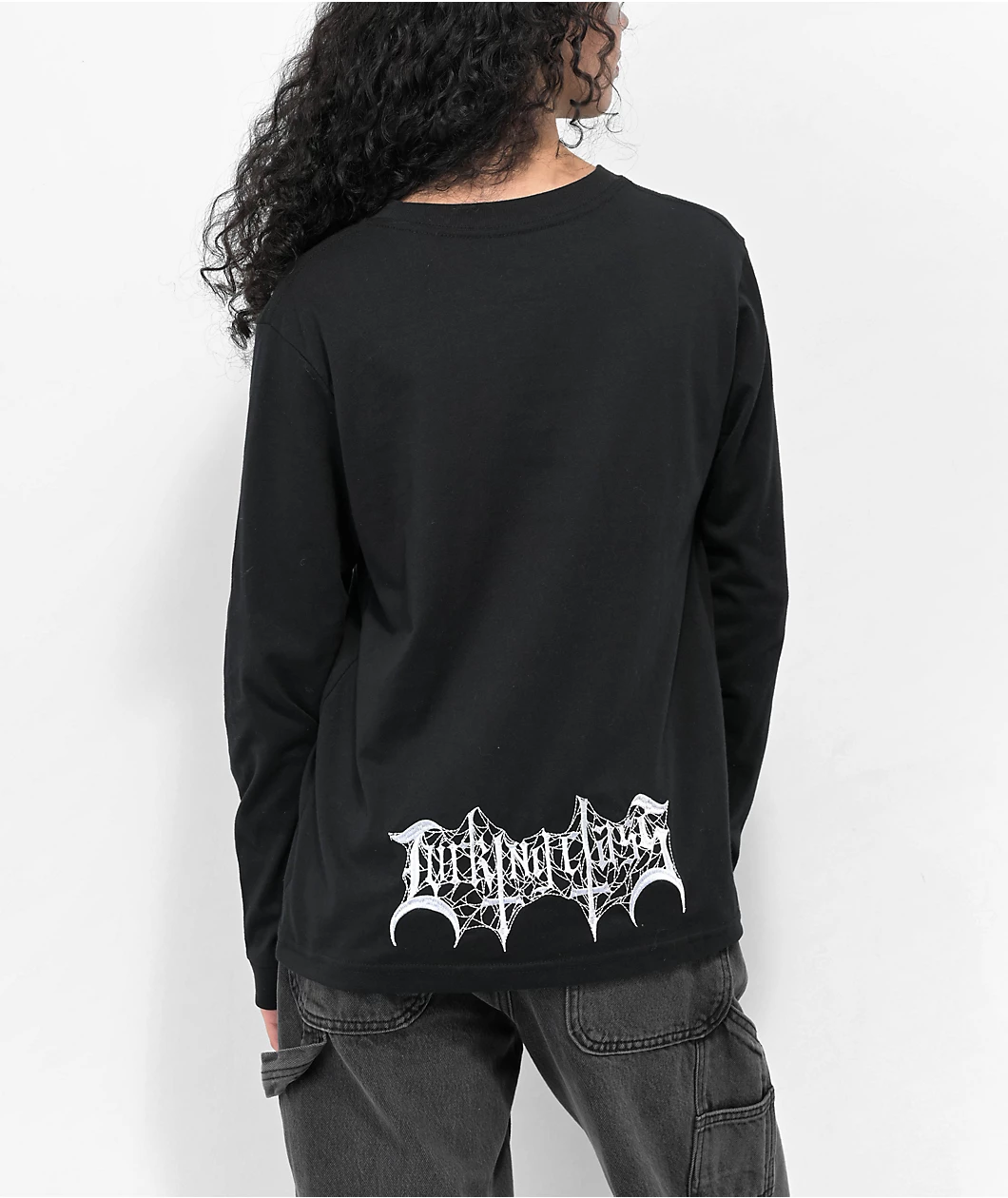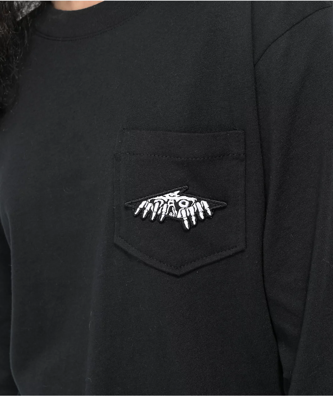 The Terror Coffin pocket t-shirt from Lurking Class by Sketchy Tank is made of 100% cotton and comes in a black, long sleeve construction with the Lurker figure embroidered onto a pocket on the left of chest. Additionally, there is brand script in white on the lower back for bold branding.