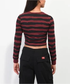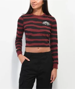 Lurking Class by Sketchy Tank brings the Terror Eyes long sleeve t-shirt with red and black horizontal striping throughout, showing off the Lurker peering through a tear left of chest. This tee, coming as part of a set with a skirt, offers a laid back look with a slim, cropped fit; coming complete with a ribbed collar and sleeve cuffs.