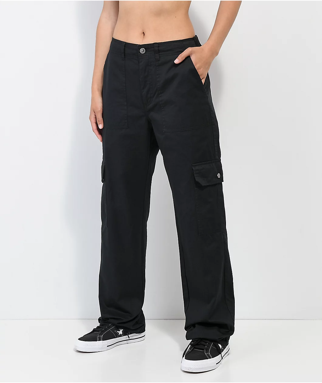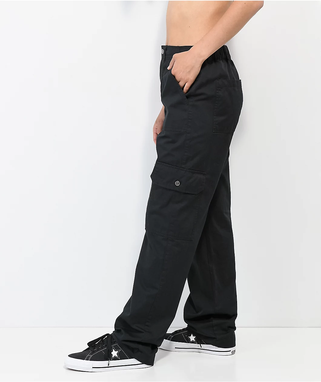 With a relaxed straight leg construction, the Othello cargo pants by Monet come in an easy to pair black colorway. The black cargo pants have a classic zipper fly closure, hand pockets, seat pockets, and cargo pockets located along the thigh. Fabricated using highly durable cotton twill, the Monet skate pants are complete with an elastic waist, belt loops, an internal adjustable drawstring, metallic hardware, and a woven Monet label on the right seat pocket for a subtle hint of branding.