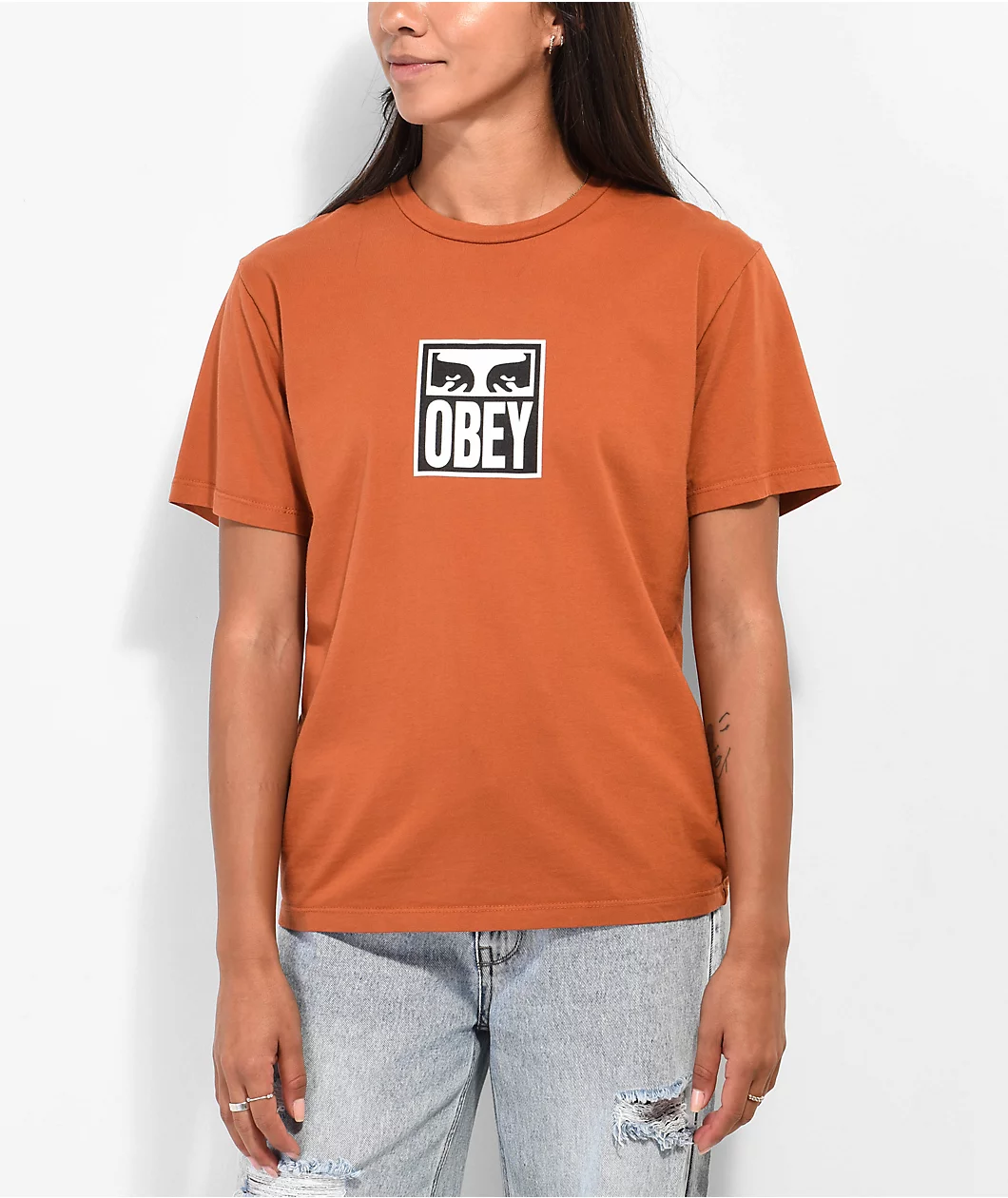 The Icon Eyes t-shirt from Obey comes in a warm brown colorway, with black and white Obey script and eyes from the brand’s signature icon logo screen-printed on the chest. Fabricated using soft lightweight cotton, the Obey Icon Eyes tee is complete with a crew neck collar and a printed neck label for comfort.