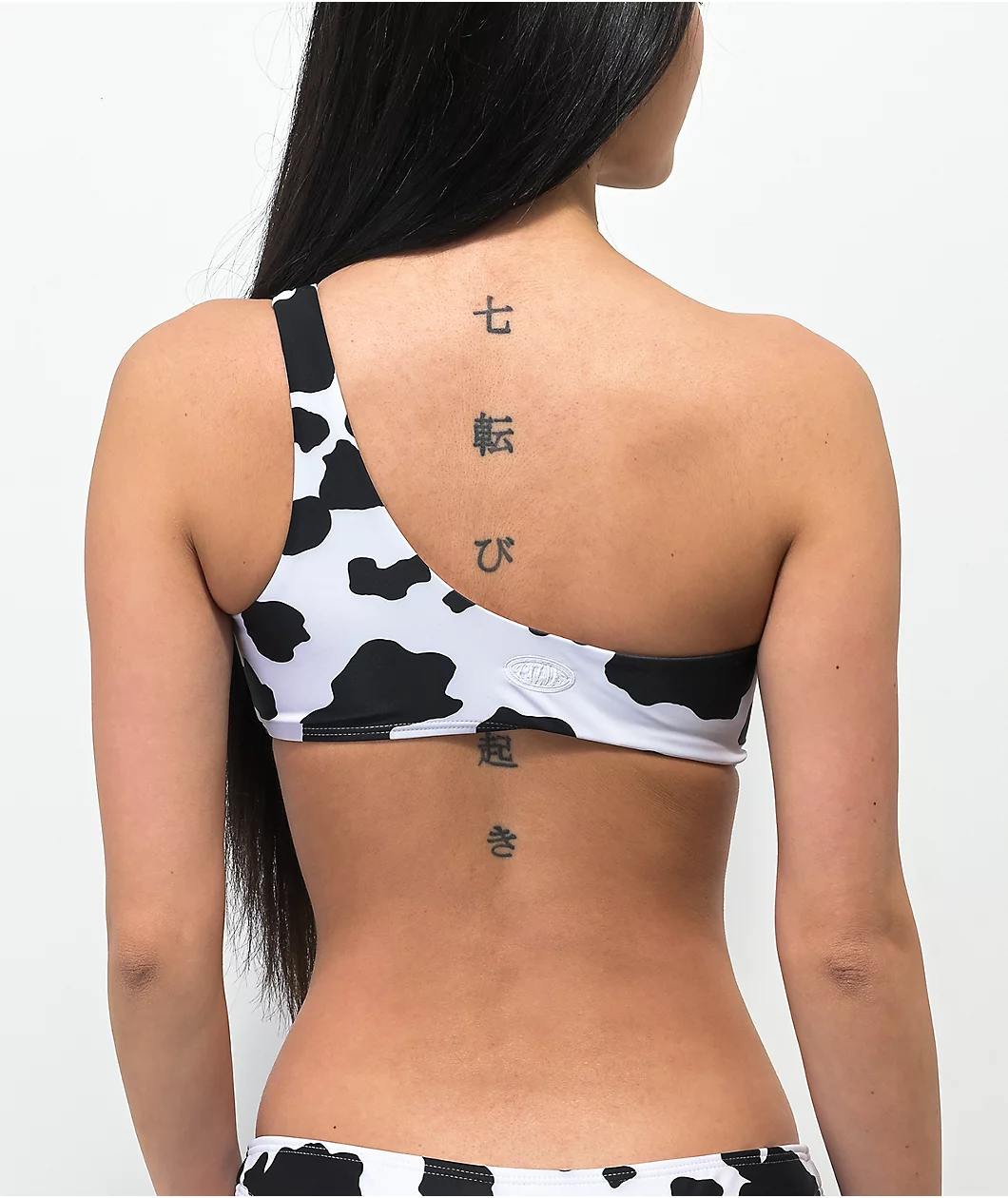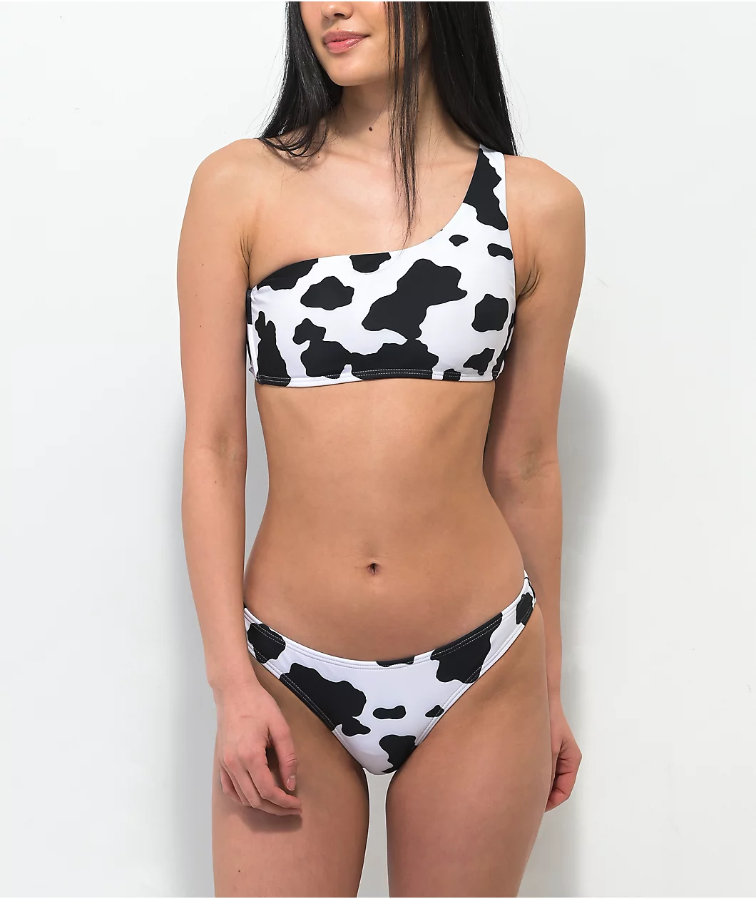 When it comes to bikini tops, Petals by Petals and Peacocks know how to impress with their Mood bandeau bikini top. It has an all-over black and white cow print design and is made of quick-drying polyester and stretchy, accommodating spandex, while the bust has removable padding. But, most notably, this tube top-style bikini has a single fixed strap design for a unique and revealing look.
