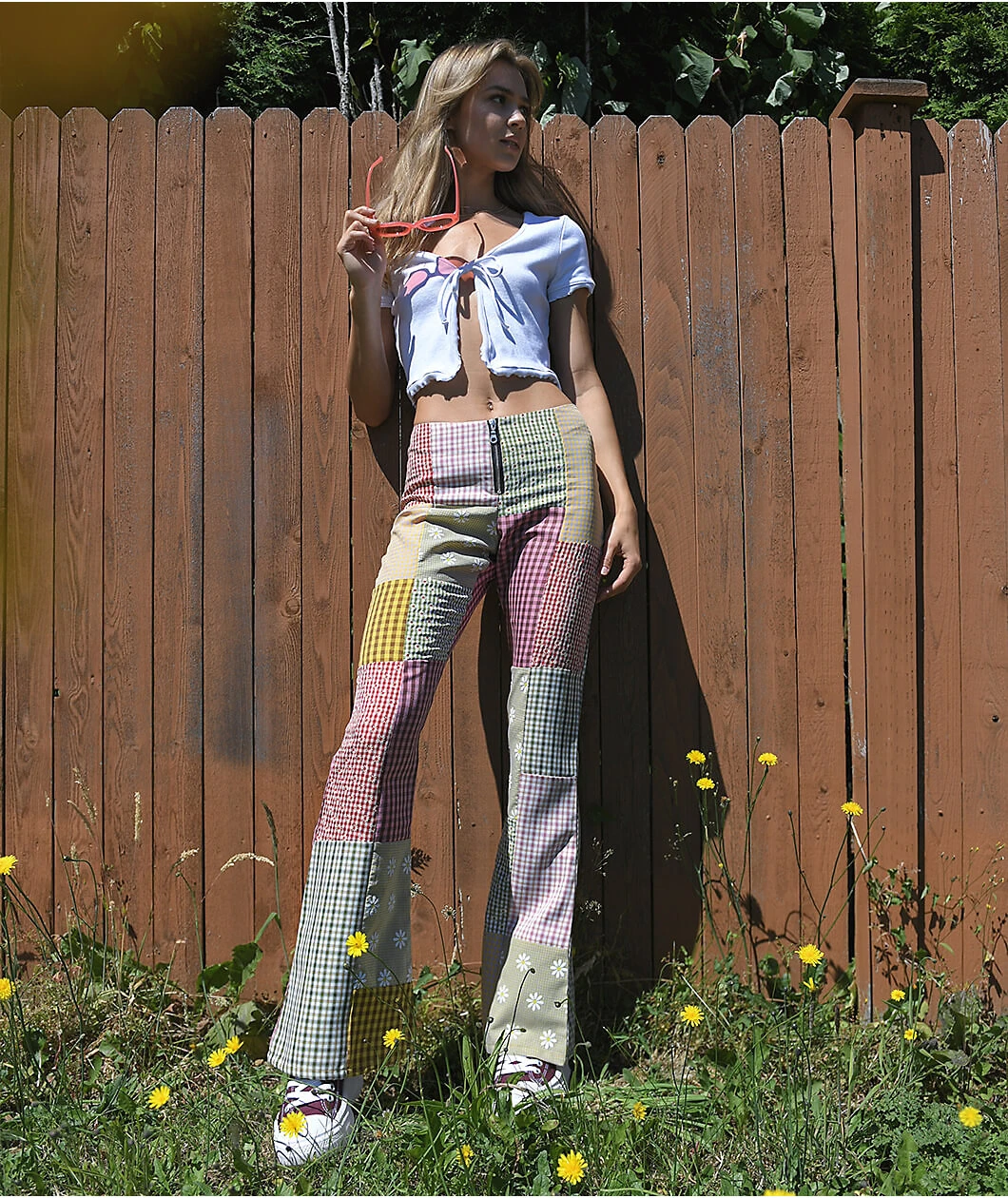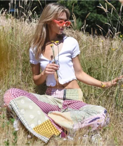 The Country flare pants from Ragged Priest is made of a polyester-viscose blend and features plaid patchwork throughout with a tight, high-waisted fit featuring a stylish flare leg. For secure closure, these pants have exposed zip-up closure on the front.