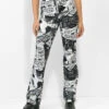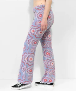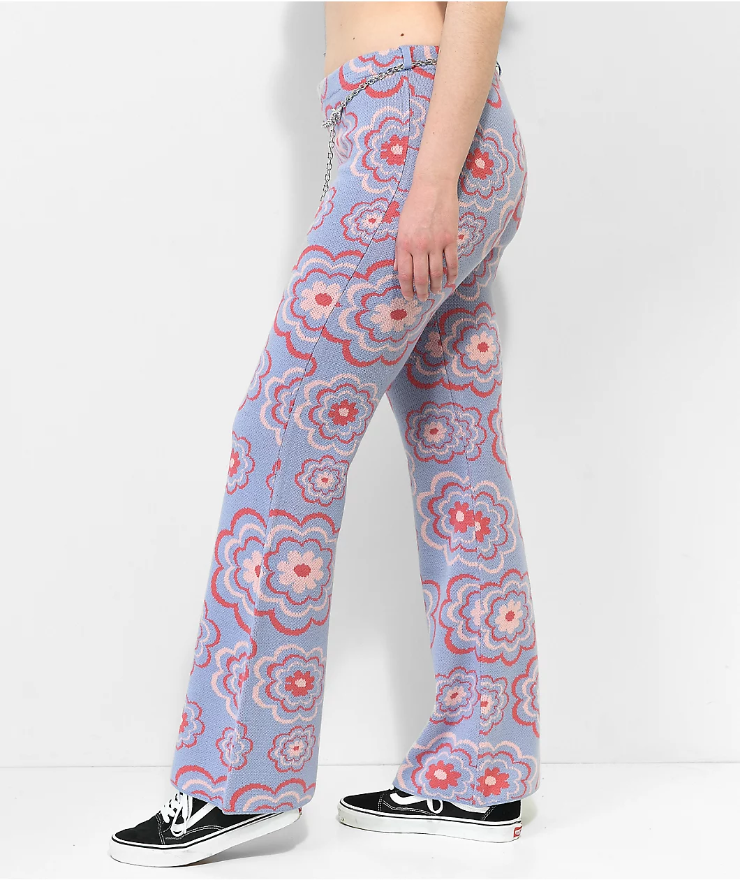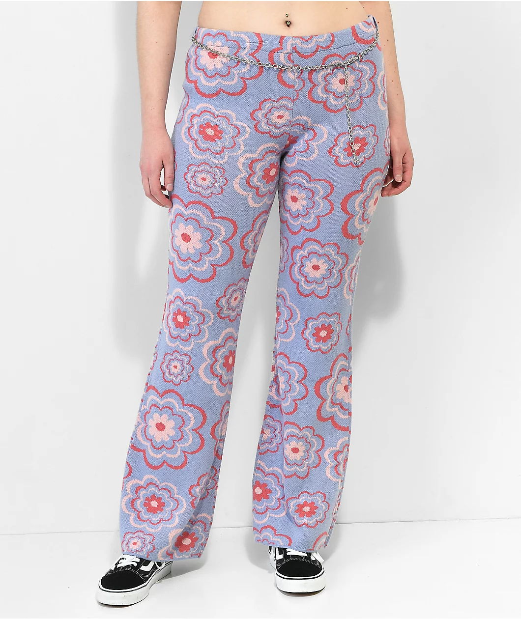 The Flower Power pants from Ragged Priest come in a high-waisted construction with flare legs for a look heavily-influenced by the hippie movement, as seen in the purple colorway adorned by pink flowers throughout. These pants are made of a soft acrylic and come adorned with a removable, silver chain belt pre-looped through the belt loops for a ready-made fit.
