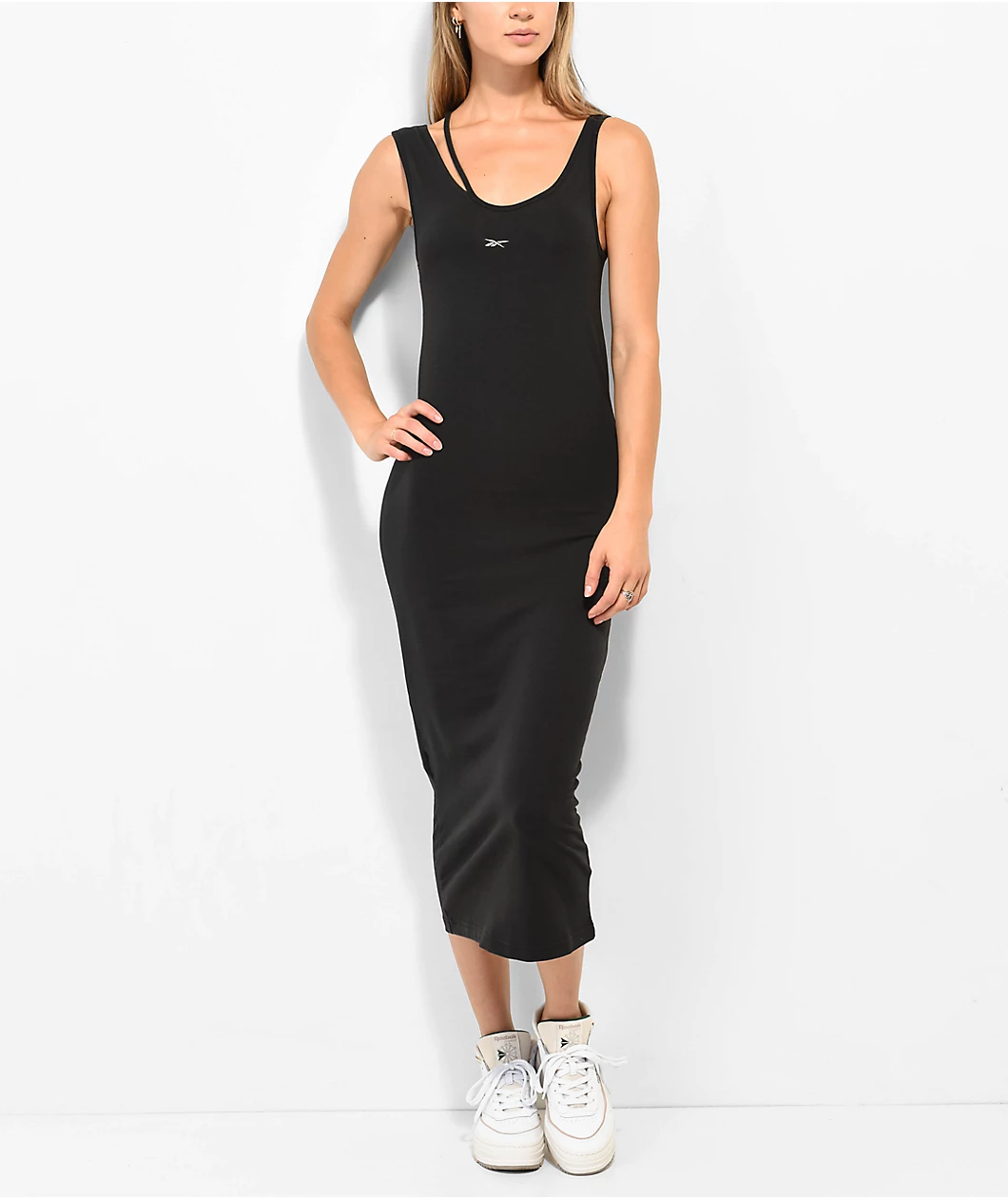 Elegance meets sportwear with the Classics midi dress in a slimming black colorway from Reebok. Made from a soft to the touch cotton and stretchy spandex, this athletic dress will have all eyes on you whether it’s out for a run or out on the town with friends.