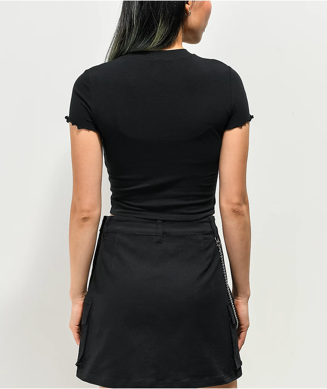 Keep your vibes edgy, and your looks fierce with the SWIXXZ Stage Dive Lace Up black t-shirt. This entirely black top features logo script across the chest paired with outstretched skeleton arms and tie front detailing for a fun and funky look for sure.