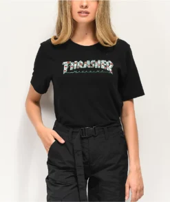 Represent your love for Thrasher with the Roses Black Boyfriend Fit T-Shirt. With a white script logo screen-printed across the chest with rose images throughout, this tee is a great way to show your love for skateboard style in floral fashion.