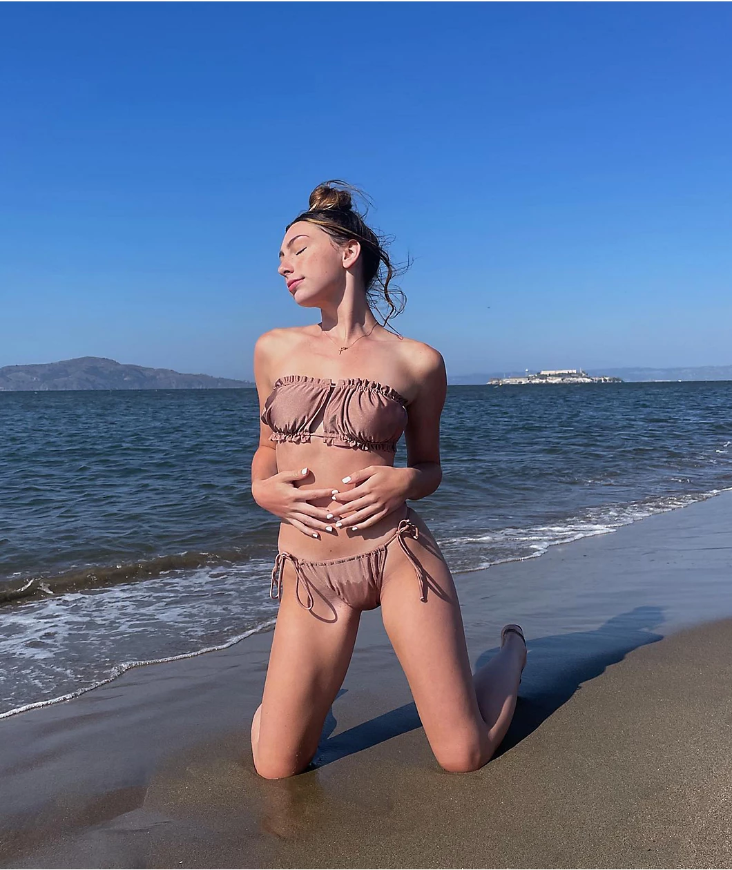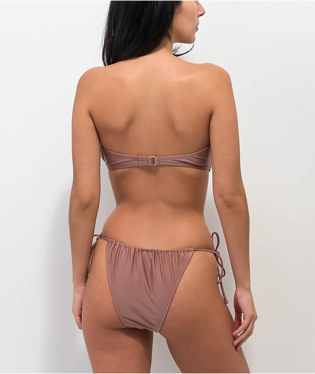 Comfortable and striking, the Trillium Zoey bikini bottom is poised for the perfect poolside attire. These bottoms come in a brown colorway and have a high leg cut, with drawstrings at the hips for simple modification.