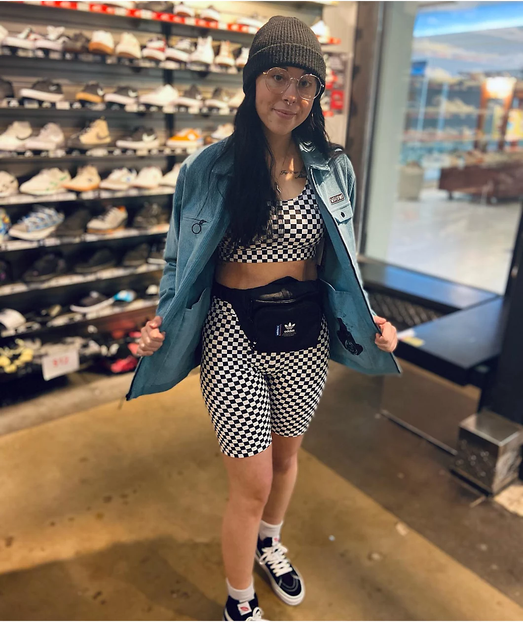 These Vans Flying V bike shorts have a stretchy, breathable cotton-elastane build and come in a striking black and white checkered design. They have a tight, slim silhouette, with a comfortable elastic waistband to ensure they’re secure all-day long.