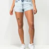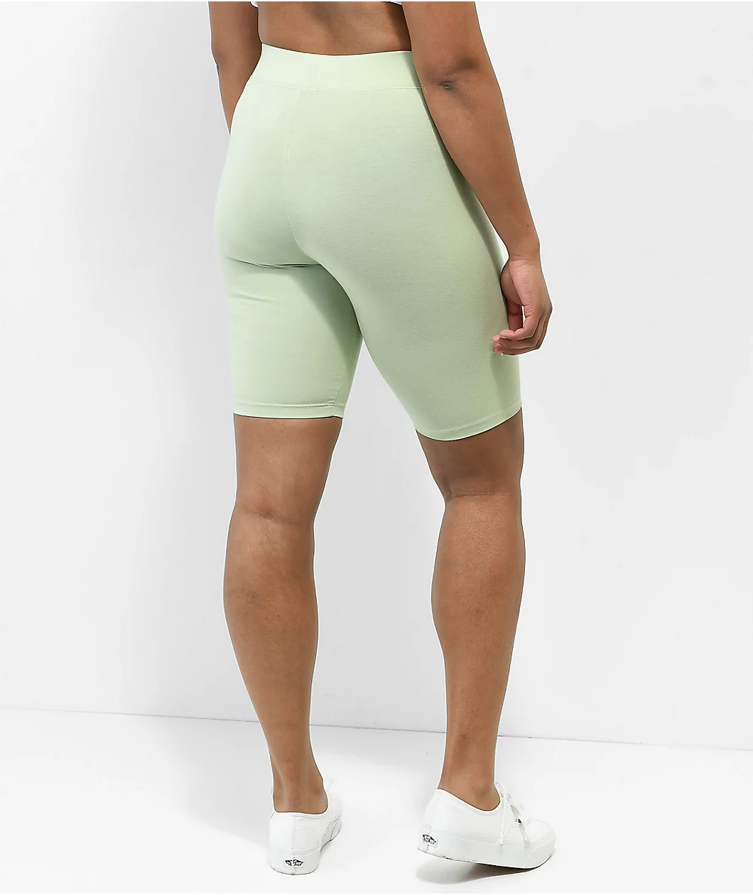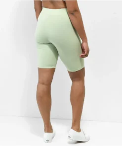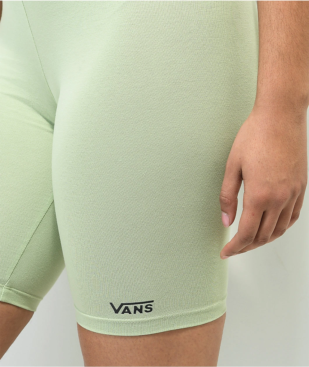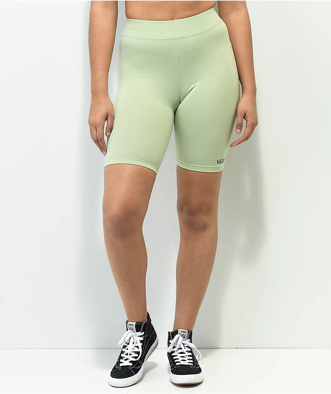 Great for casual or athletic wear, these slim-fitting, high-waisted Vans bike shorts have a celadon green colorway with a small screen-printed Flying V logo on the left leg opening. These are made from soft, breathable cotton and stretchy elastane, giving them a comfortable and flattering fit.