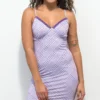 The Groovy Baby mini dress from Your Highness has a unique red, pink, and white tie dye treatment with a screen-printed floral brand script on the chest. This Your Highness sleeveless dress is made of soft, breathable cotton, and has a loose, flowy fit with a scoop neckline, fixed shoulder straps, and lettuce hem detailing throughout.