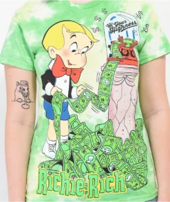 your Highness brings the Money Makin’ Machine t-shirt in a green and yellow tie dye colorway, displaying the colorful image of the well known Richie Rich printing money from his very own money making machine. This tee is made from a durable cotton material, and comes complete with a tagless neck label for all day comfort.